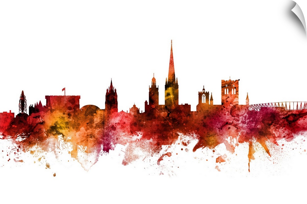 <p>Watercolor art print of the skyline of Norwich, Norfolk, England, United Kingdom.</p>