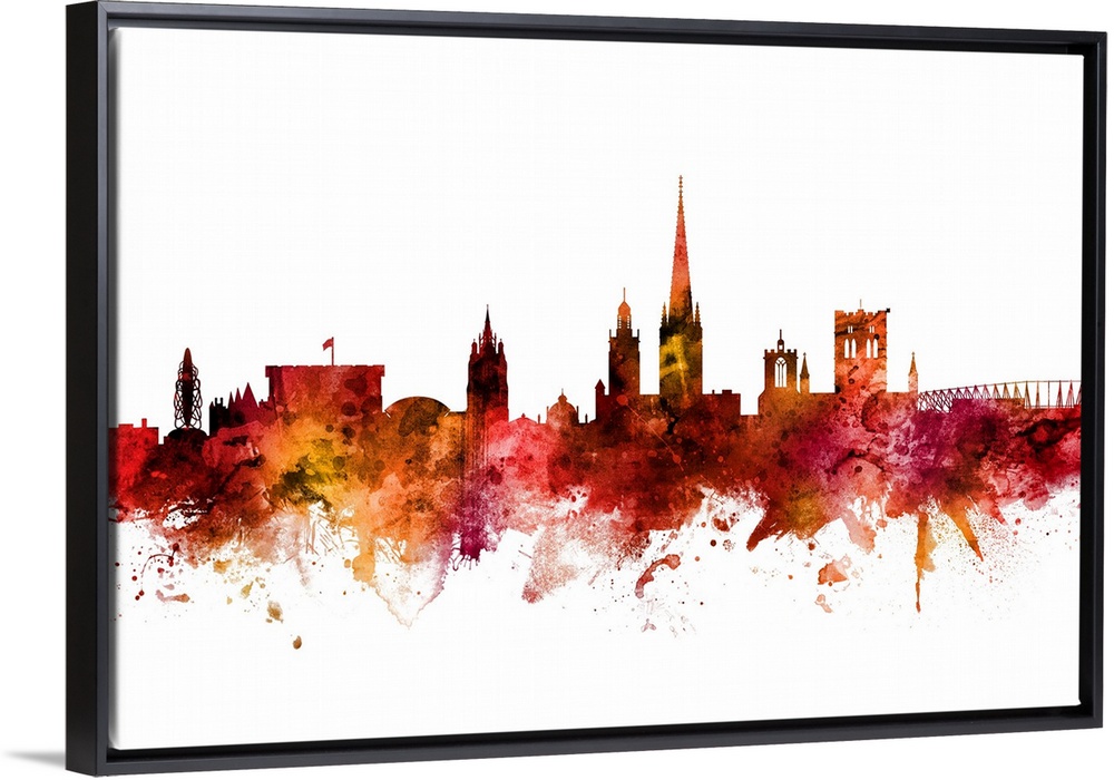<p>Watercolor art print of the skyline of Norwich, Norfolk, England, United Kingdom.</p>