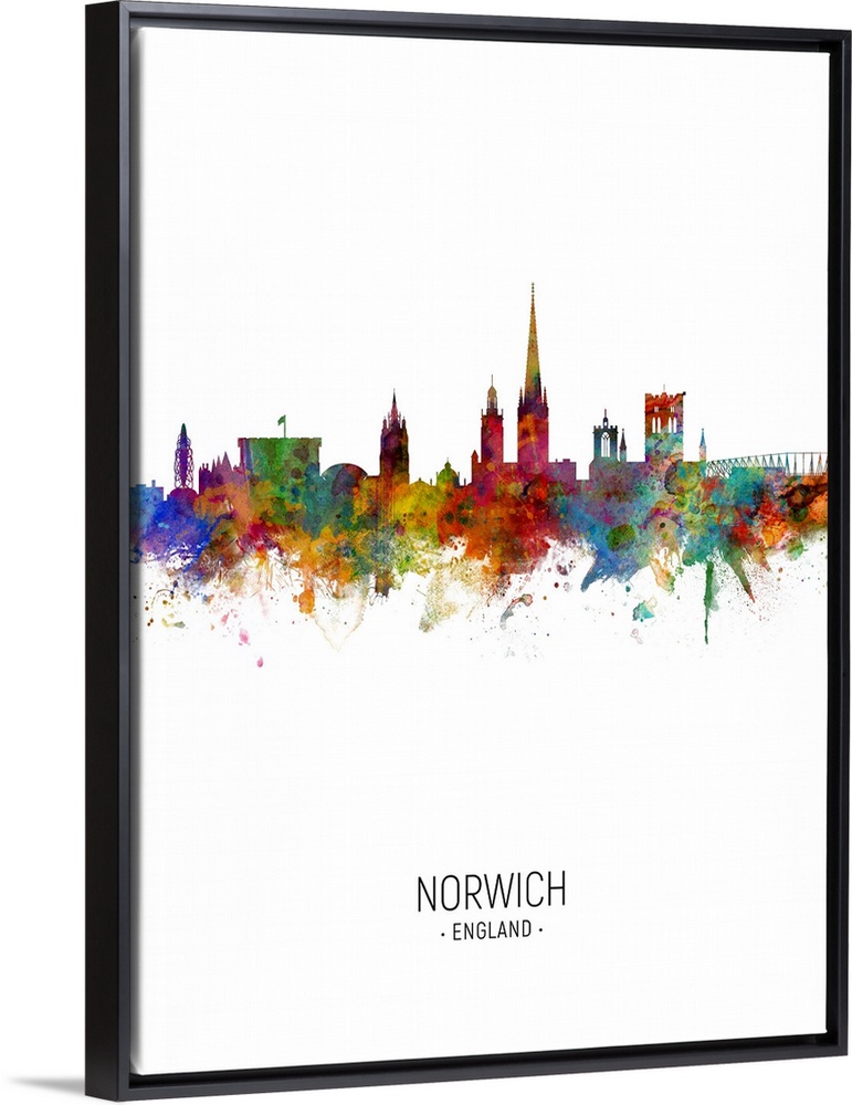 <p>Watercolor art print of the skyline of Norwich, Norfolk, England, United Kingdom</p>