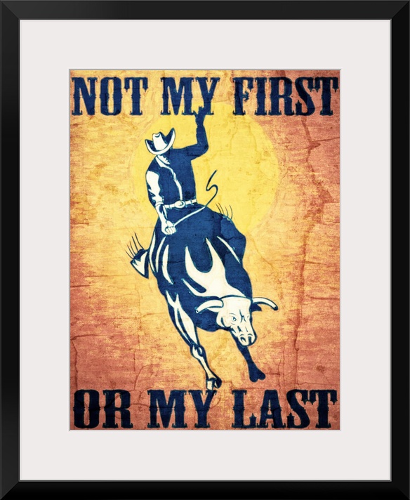 <p>"Not My First Or My Last" with an image of a cowboy riding a bull.</p>
