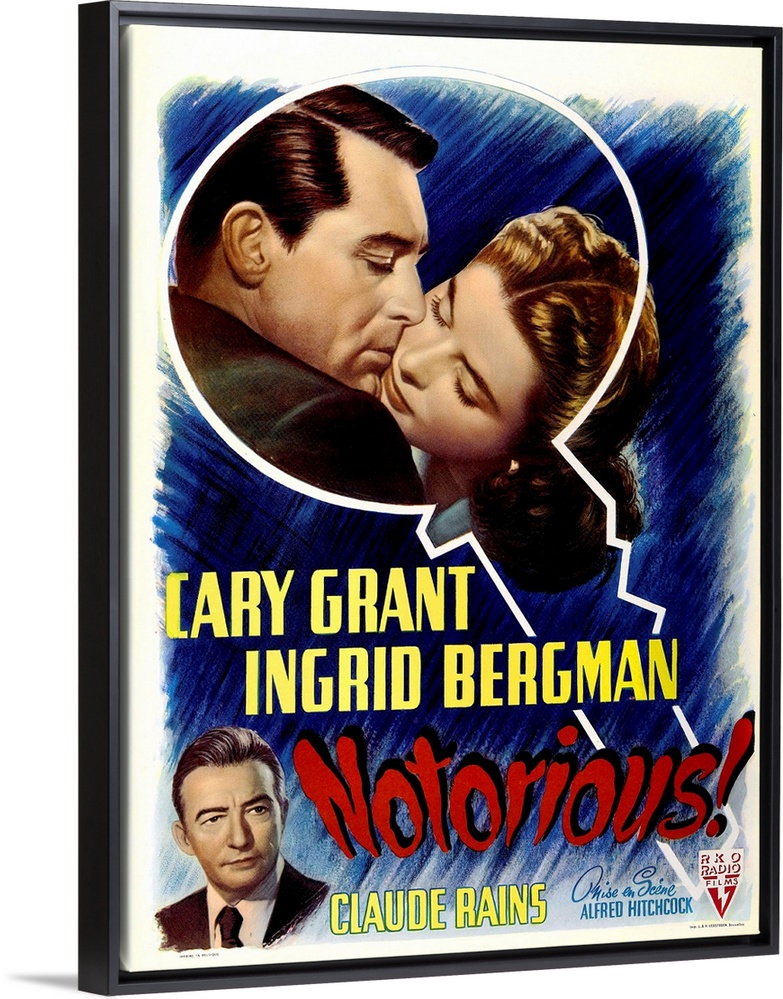 <p>Notorious, Top From Left: Cary Grant, Ingrid Berman, Bottom Left: Claude Rains On Belgian Poster Art, 1946.</p>