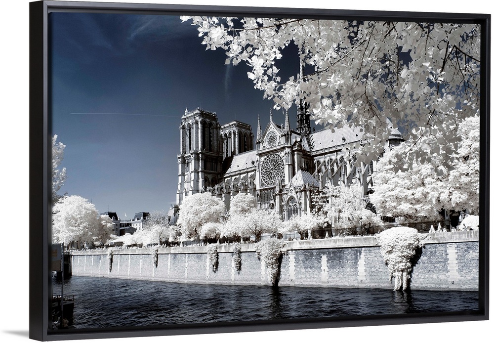 <p>A view of the Notre Dame Cathedral in Paris, made in infrared mode in summer. The vegetation is white and rendering of the sky is deep blue. From the "Another Look" series.</p>