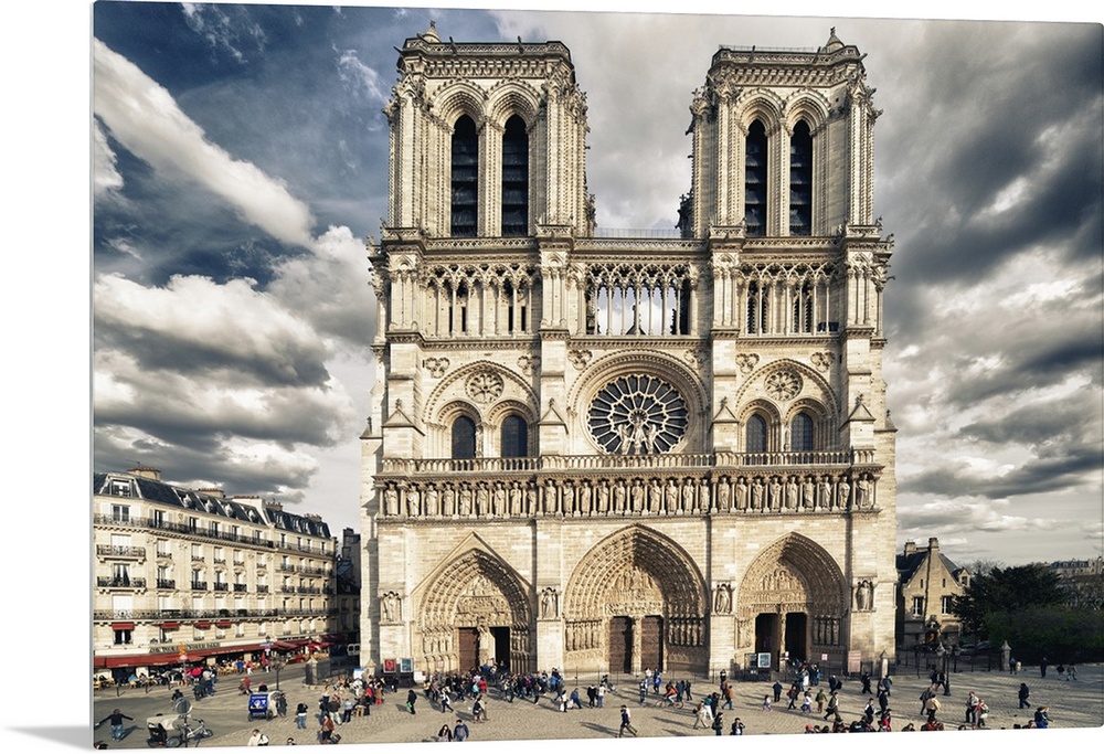 <p>Fine art photograph of the front of the Notre Dame of Paris Cathedral with a vivid sky.</p>