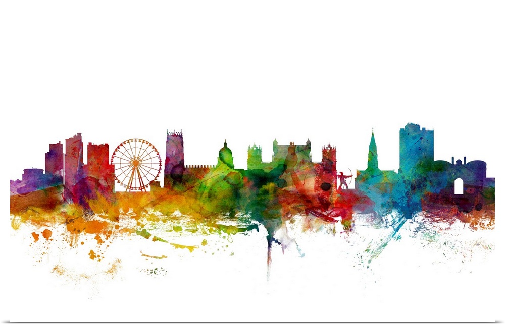 <p>Contemporary piece of artwork of the Nottingham skyline made of colorful paint splashes.</p>