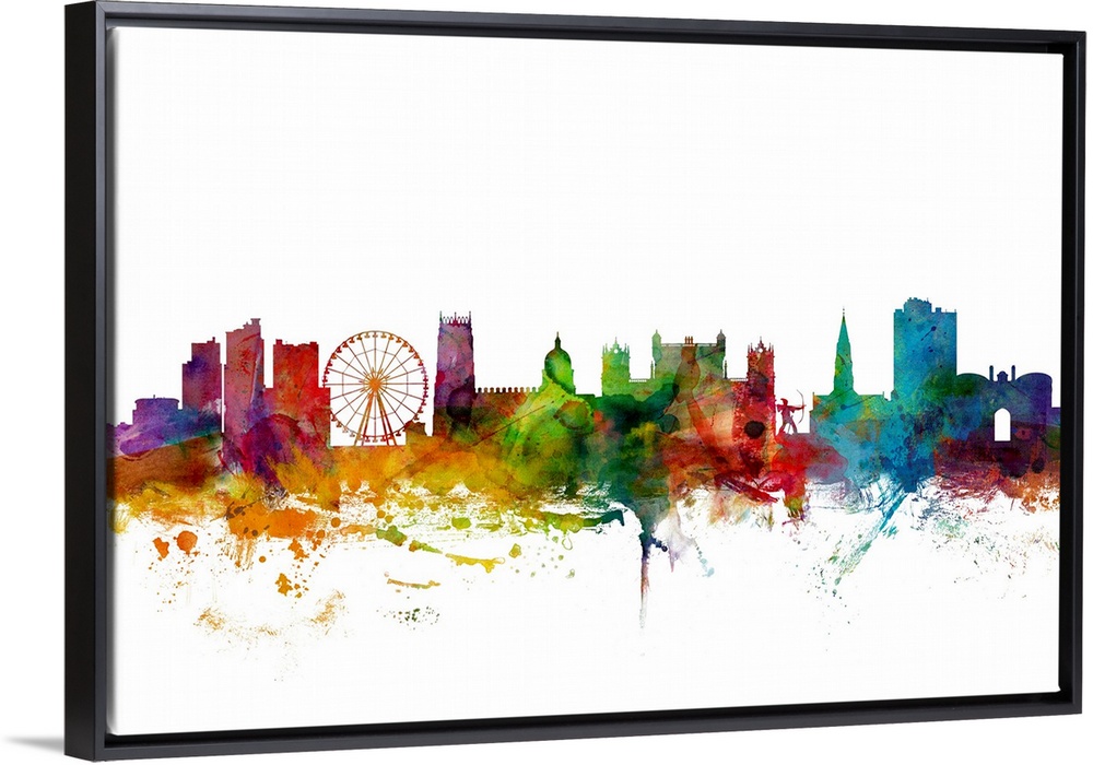 <p>Contemporary piece of artwork of the Nottingham skyline made of colorful paint splashes.</p>