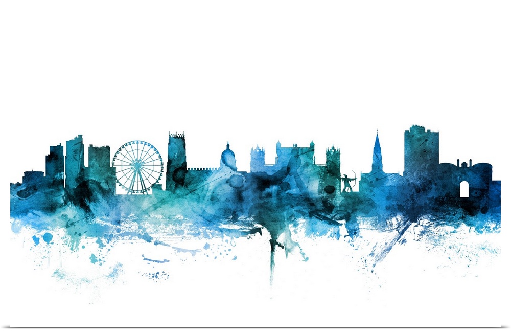<p>Watercolor art print of the skyline of Nottingham, England, United Kingdom.</p>