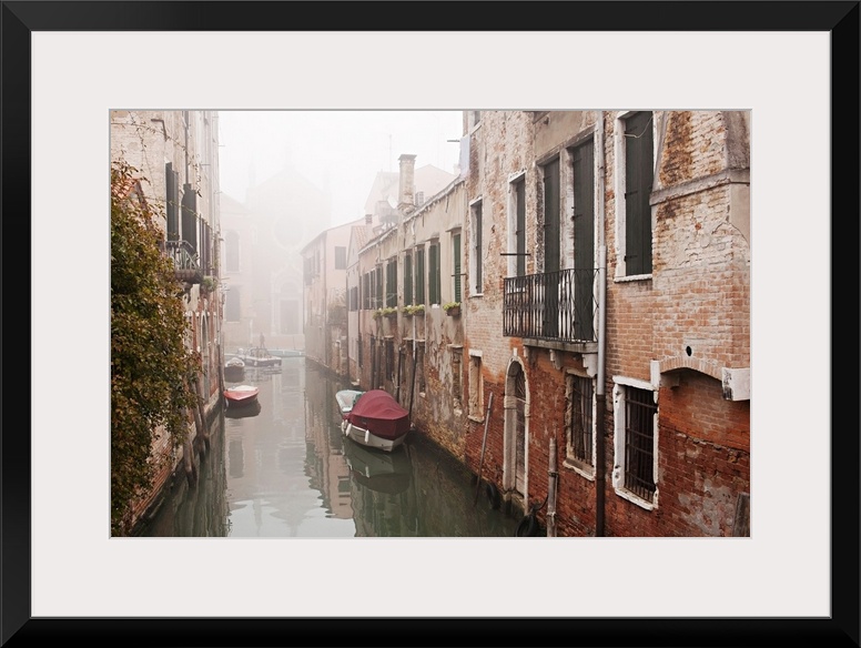 <p>Autumnal mists lie over the water of a small backwater canal on a quiet November morning in Venice.</p>