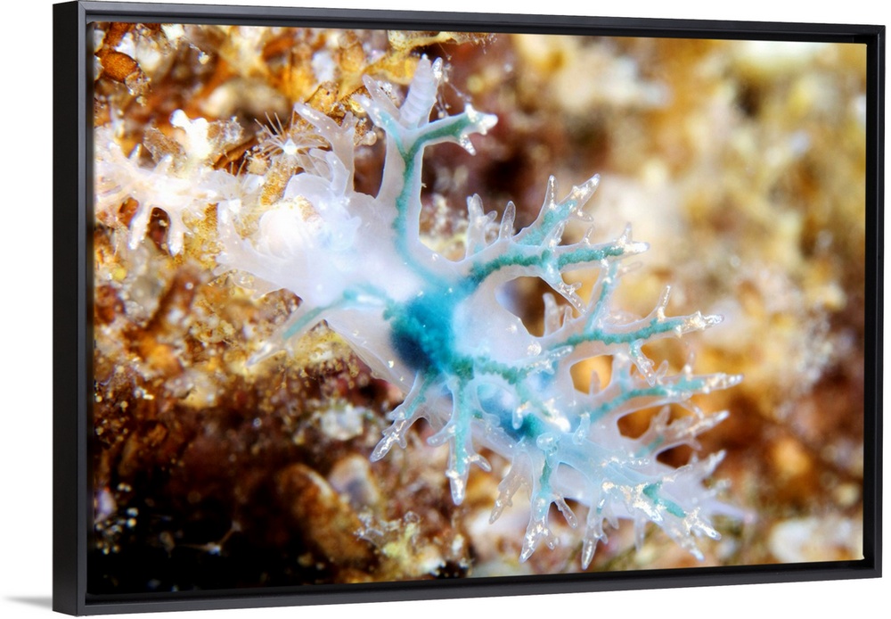 <p>Nudibranch. Blue form of the nudibranch Dendronotus frondosus. Nudibranchs (sea slugs) are shell-less marine molluscs that live in seas around the world. They have external gills that give the nudibranch its name, meaning naked gills.</p>