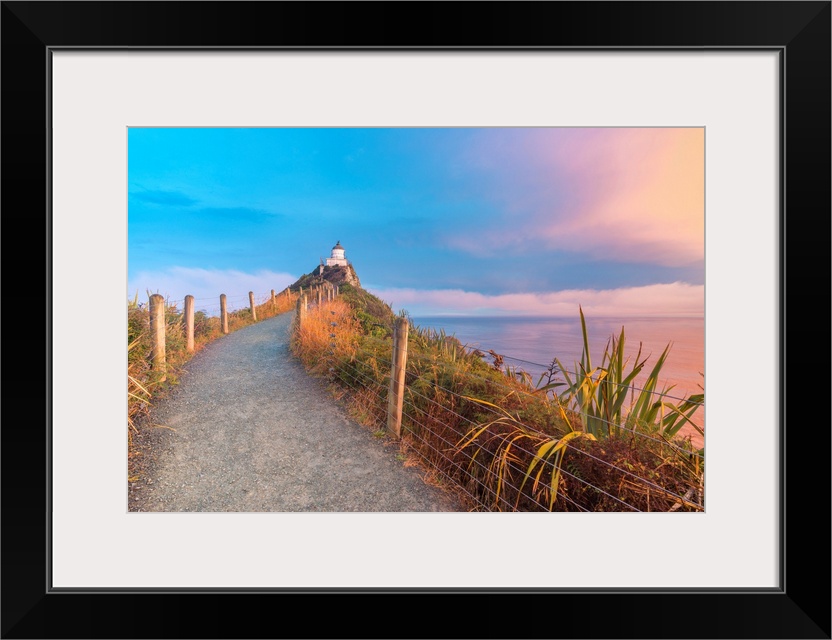 <p>Nugget Point lighthouse at sunset. Ahuriri Flat, Clutha district, Otago region, South Island, New Zealand.</p>
