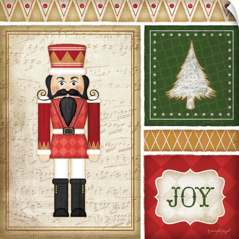 <p>Holiday themed home decor artwork of a nutcracker in a tiled square.</p>