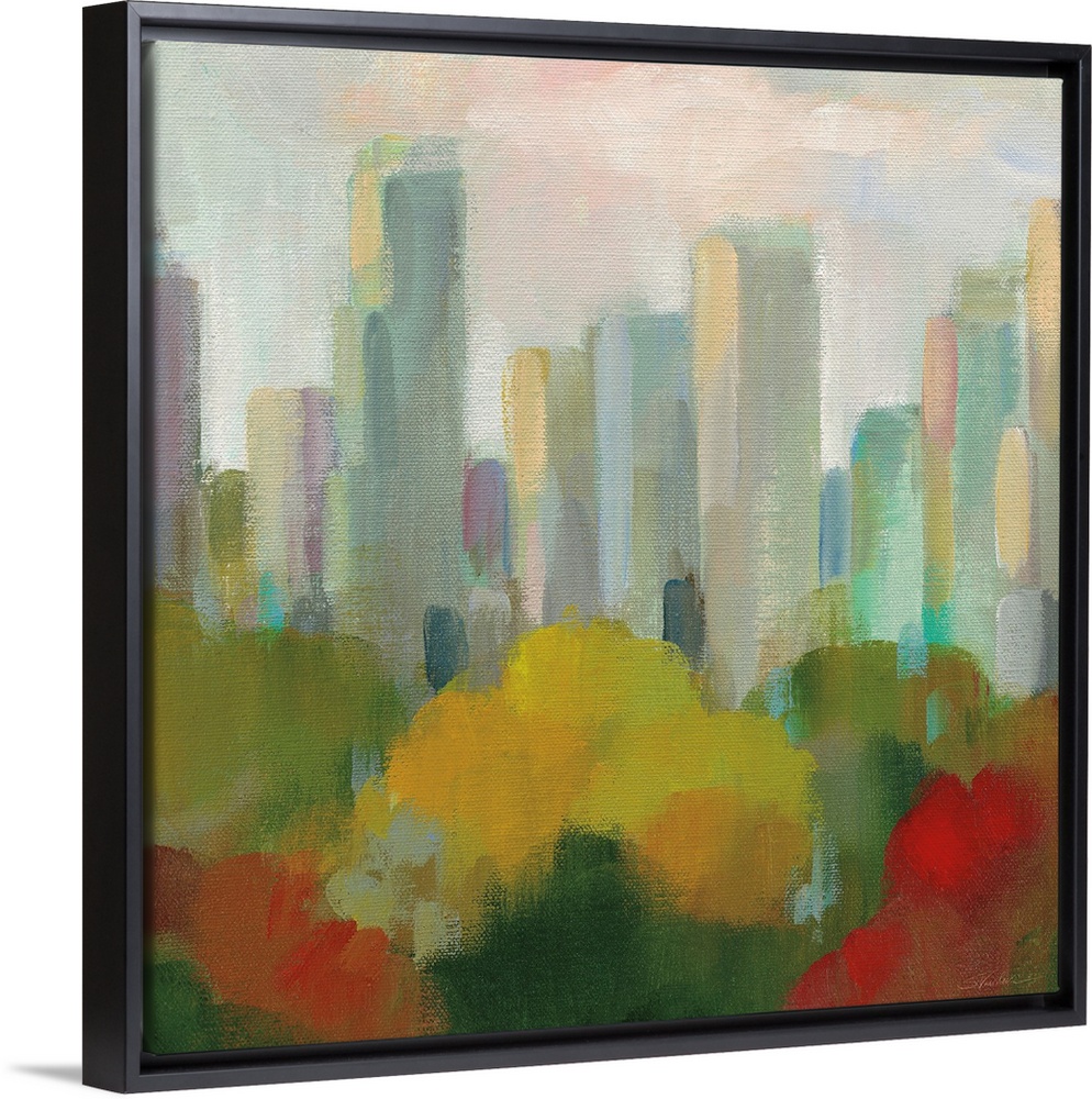 <p>A modern contemporary painting in an impressionism style of Central Park with the New York City Skyline in the background.</p>