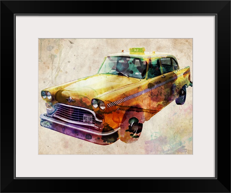 <p>New York City Classic Yellow Taxi Cab, urban watercolor / mixed media</p>