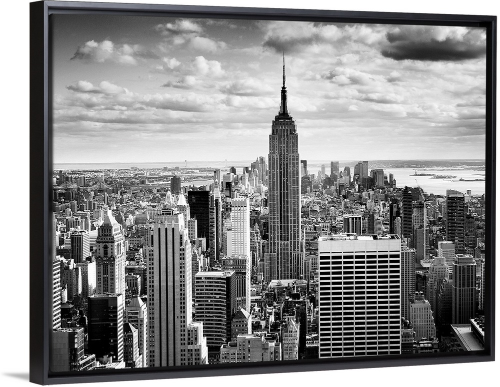 <p>Black and white photography of NYC downtown, with the New York empire state building prominently in the center.</p>