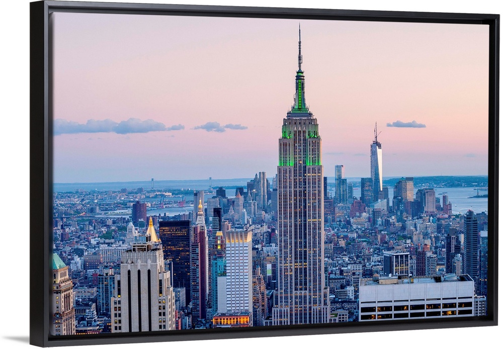 <p>New York, New York City, Manhattan, Rockefeller Center, Empire State Building and south Manhattan view from Top of the Rock.</p>