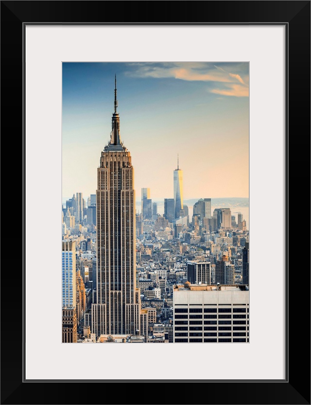 <p>New York, New York City, Manhattan, Empire State Building, Cityscape from Top of the Rock at the Rockefeller Center.</p>