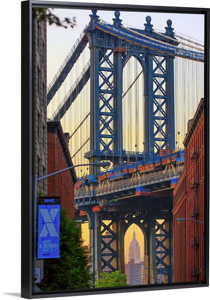 <p>New York, New York City, Manhattan, Manhattan Bridge, Dumbo and Manhattan bridge classic view from Washington Street.</p>