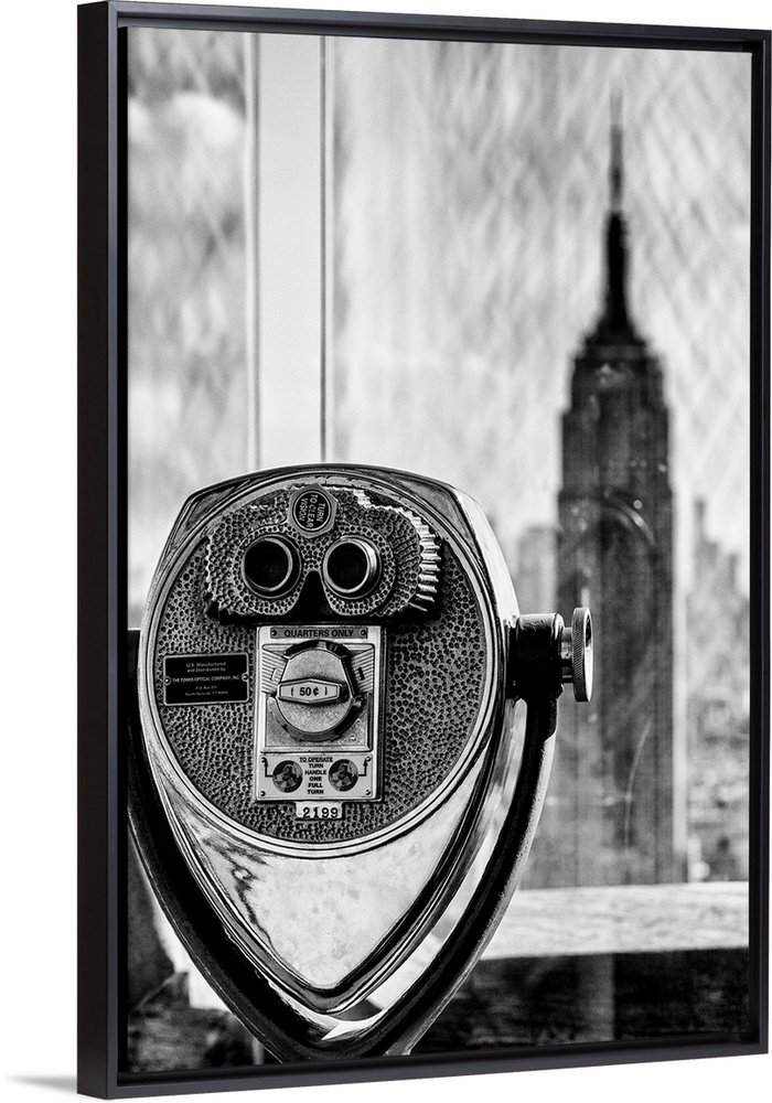 <p>New York, New York City, Manhattan, Rockefeller Center, Binoculars and skyscraper from Top of the Rock with the Empire State Building in the background.</p>