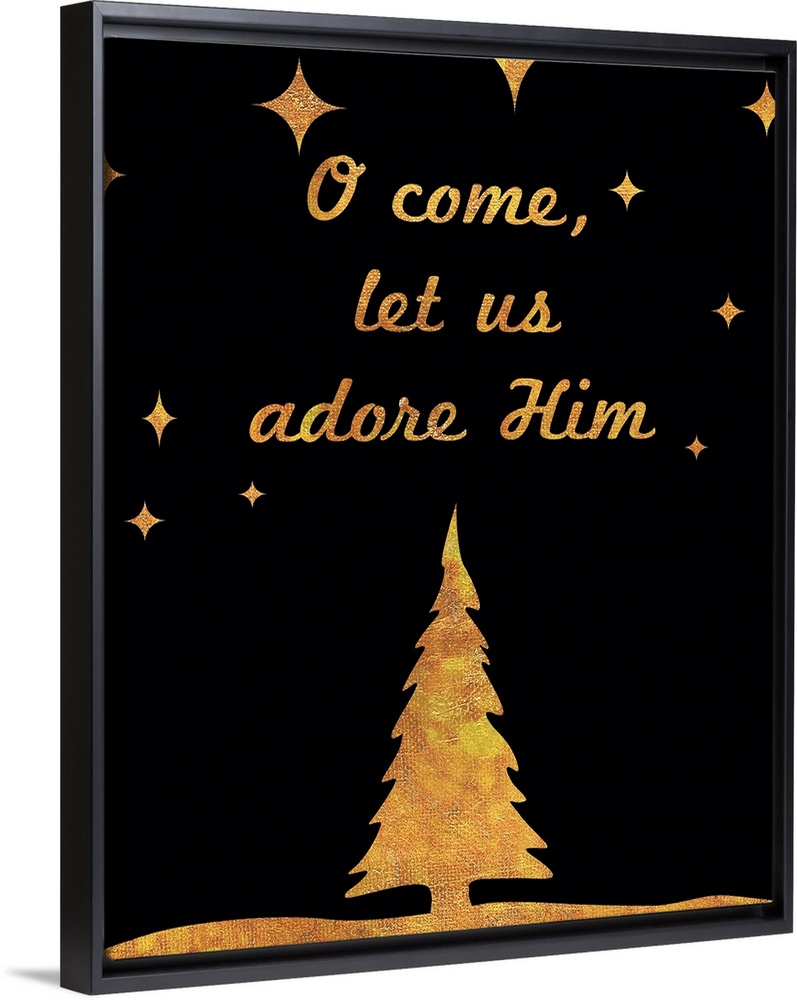 <p>"O Come, Let Us Adore Him" in gold and black.</p>