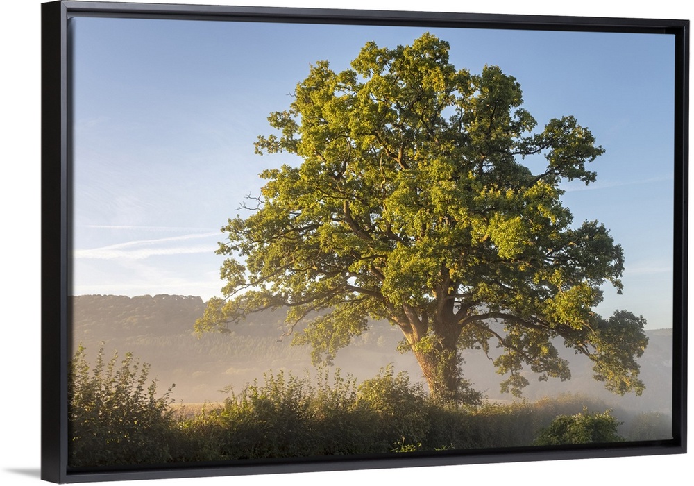 <p>Oak tree bathed in sunshine and surrounded by morning mist in the Wye valley at Bigsweir.</p>
