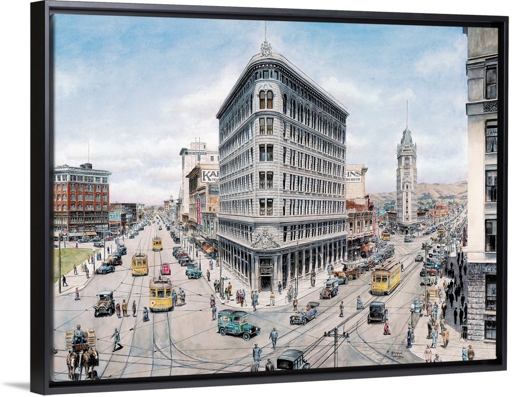 <p>Contemporary painting of a bustling street in Oakland.</p>