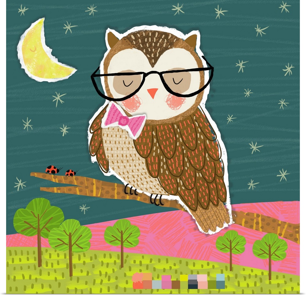 Art Children's Art Nursery Blue Wall Art Decorative Art Graphic Art Wildlife Bird Owl