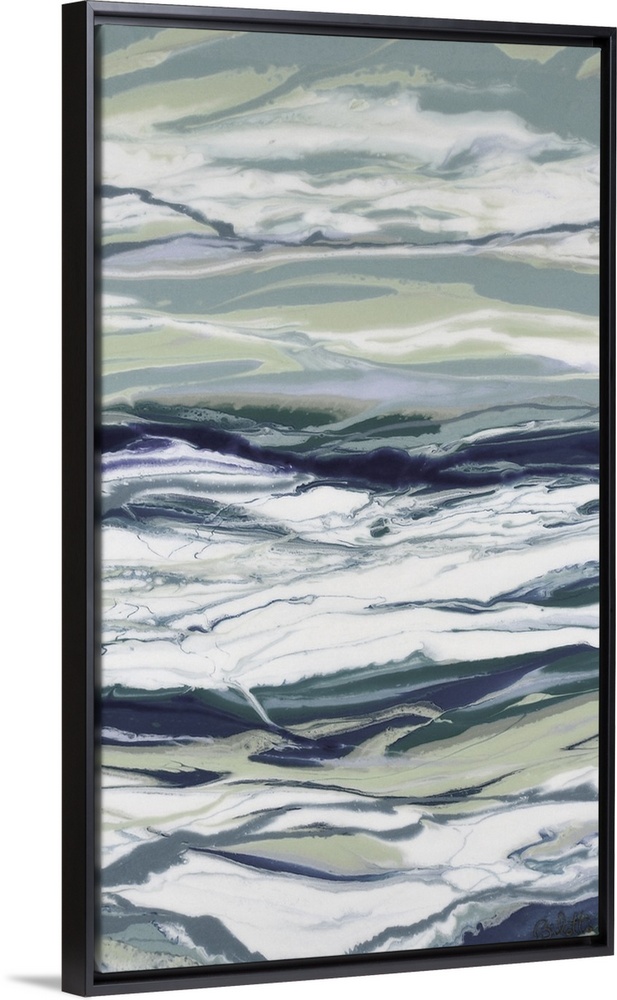 <p>A cool toned, marble-like abstract painting that represents the ocean.</p>