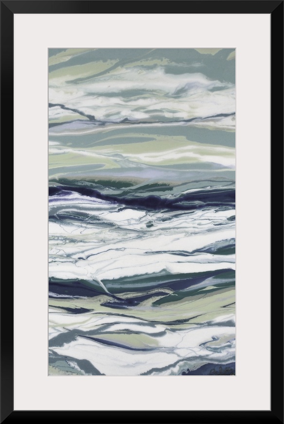 <p>A cool toned, marble-like abstract painting that represents the ocean.</p>