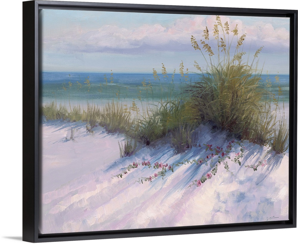 <p>Contemporary painting of beach grasses on a dune near the ocean.</p>