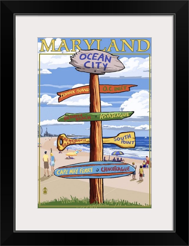 <p>Retro stylized art poster of a sign post showing multiple directions.</p>