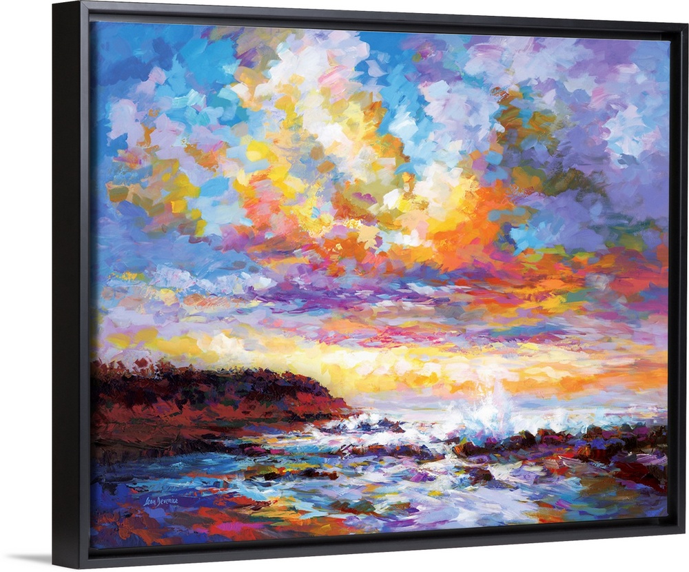 Elevate your home or office décor by adding a modern floating frame to your canvas art print. Finishing your gallery wrapped canvas with a floating frame enhances the beauty and detail of our giclée art prints. Handcrafted from solid wood, and available in multiple finish colors, there’s sure to be a frame to accent your canvas art print.