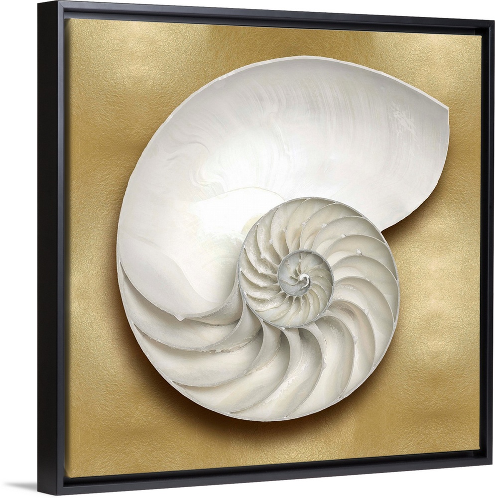 <p>Square beach decor with a nautilus shell on a gold background.</p>
