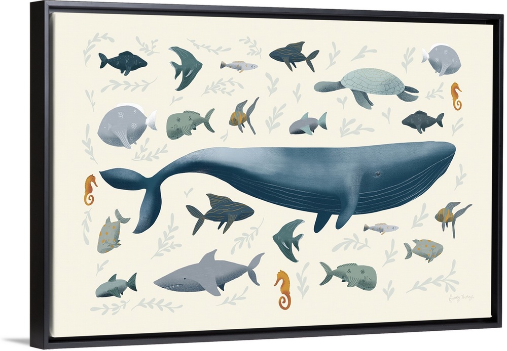 Art Coastal Children's Art Beach House Décor Contemporary Art Graphic Art Becky Thorns Wildlife Marine Life Fish Whale