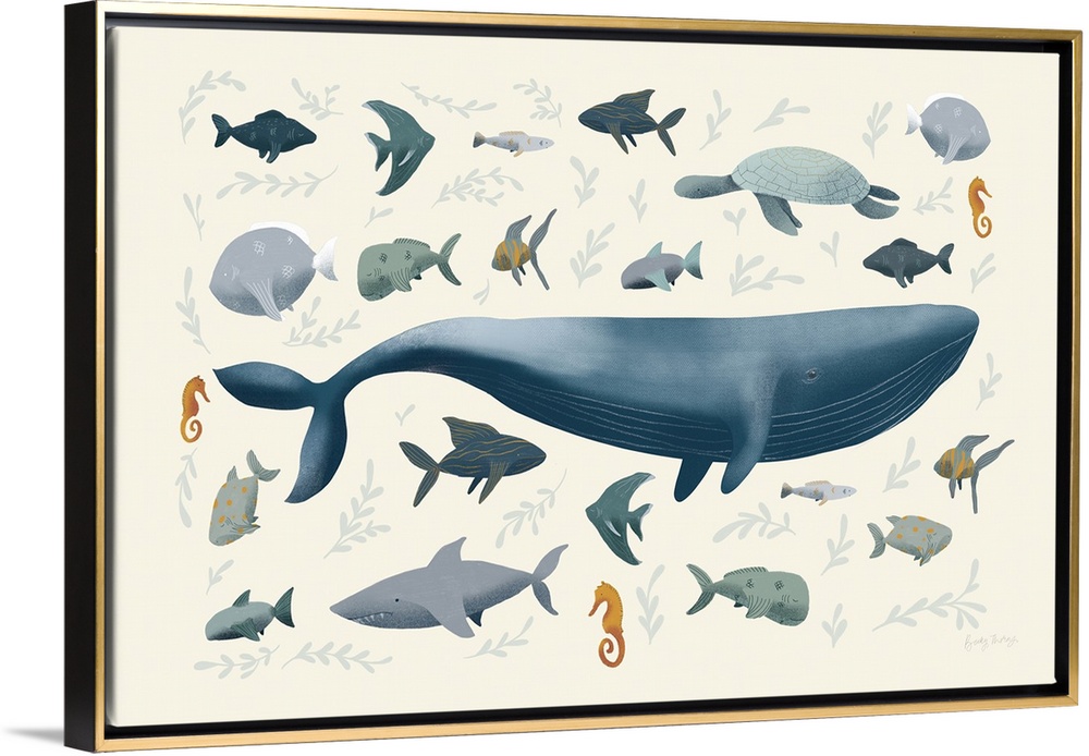 Art Coastal Children's Art Beach House Décor Contemporary Art Graphic Art Becky Thorns Wildlife Marine Life Fish Whale