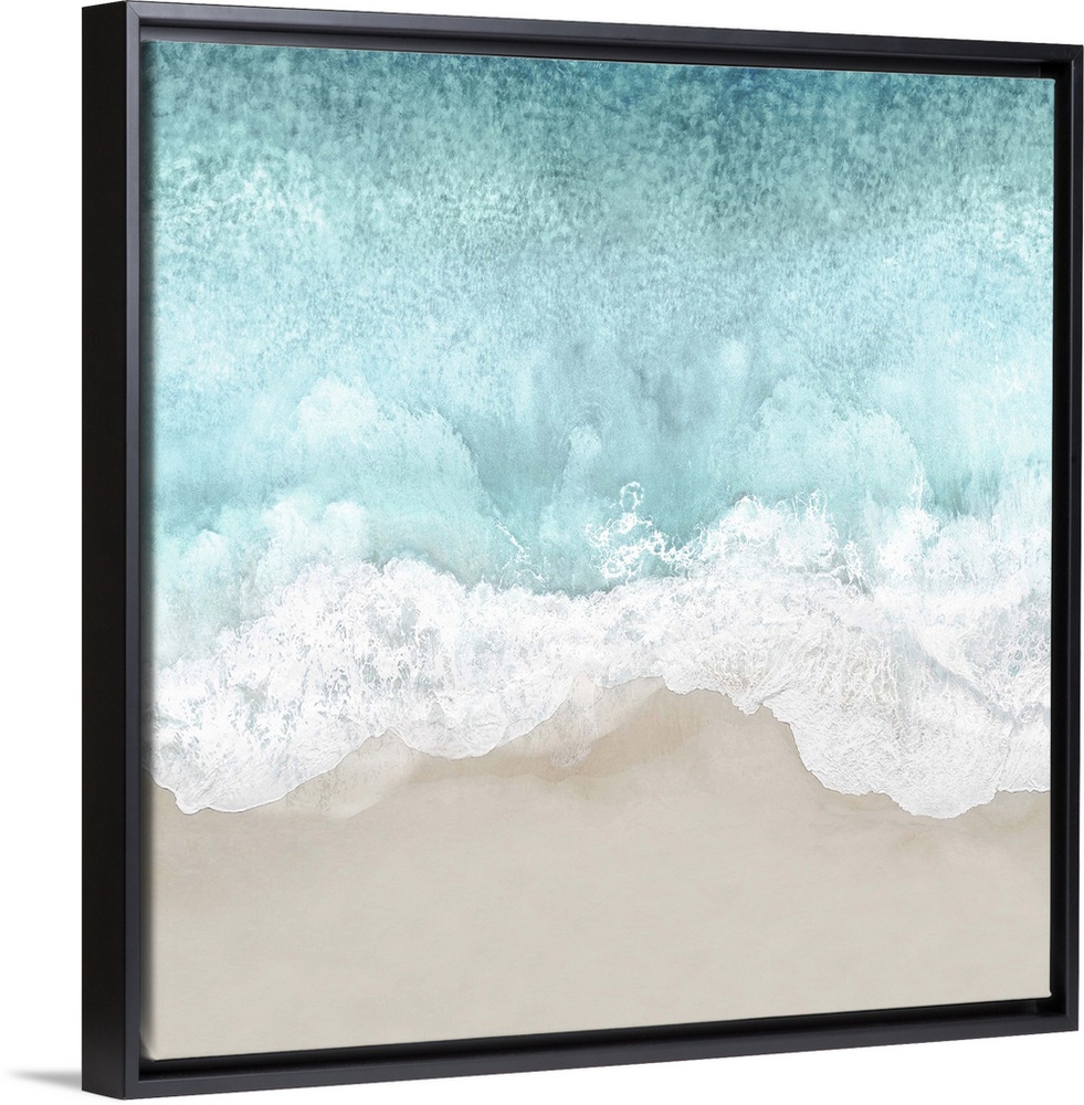 <p>One artwork in a series of aerial shots of a beach as light blue waves break upon the shore.</p>