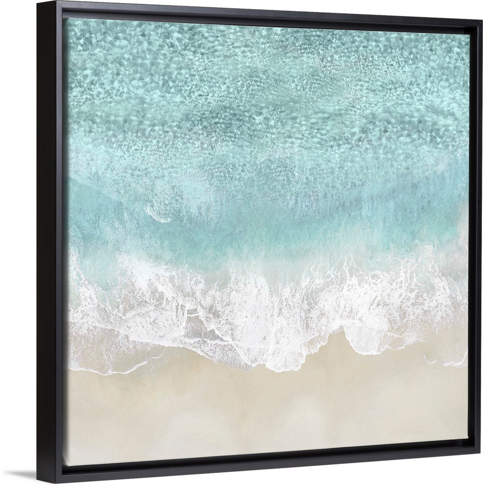 <p>One artwork in a series of aerial shots of a beach as light blue waves break upon the shore.</p>