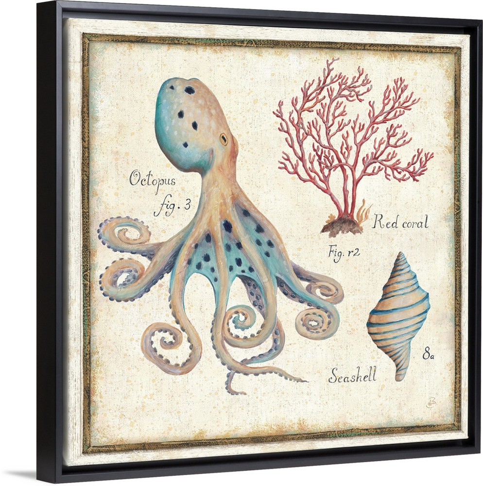 Art Daphne Brissonnet Wildlife Decorative Art Painting Shells Marine Life Coral Octopus and Squid