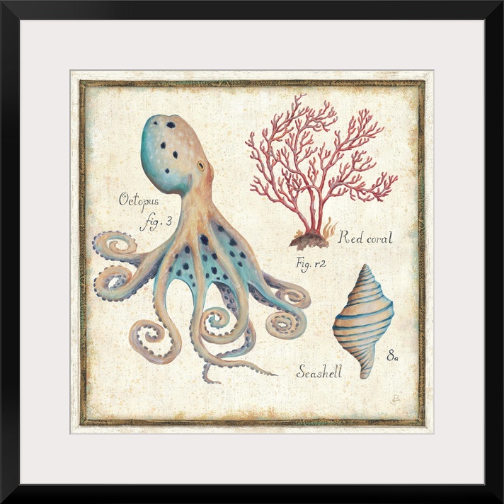Art Daphne Brissonnet Wildlife Decorative Art Painting Shells Marine Life Coral Octopus and Squid