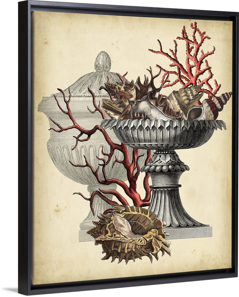 Art Beach House Décor Drawing Shells Vision Studio Vintage Art Wildlife Marine Life Coral