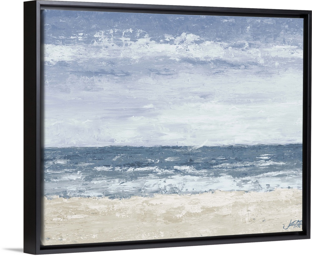 <p>A contemporary abstract painting of the beach with muted tones.</p>