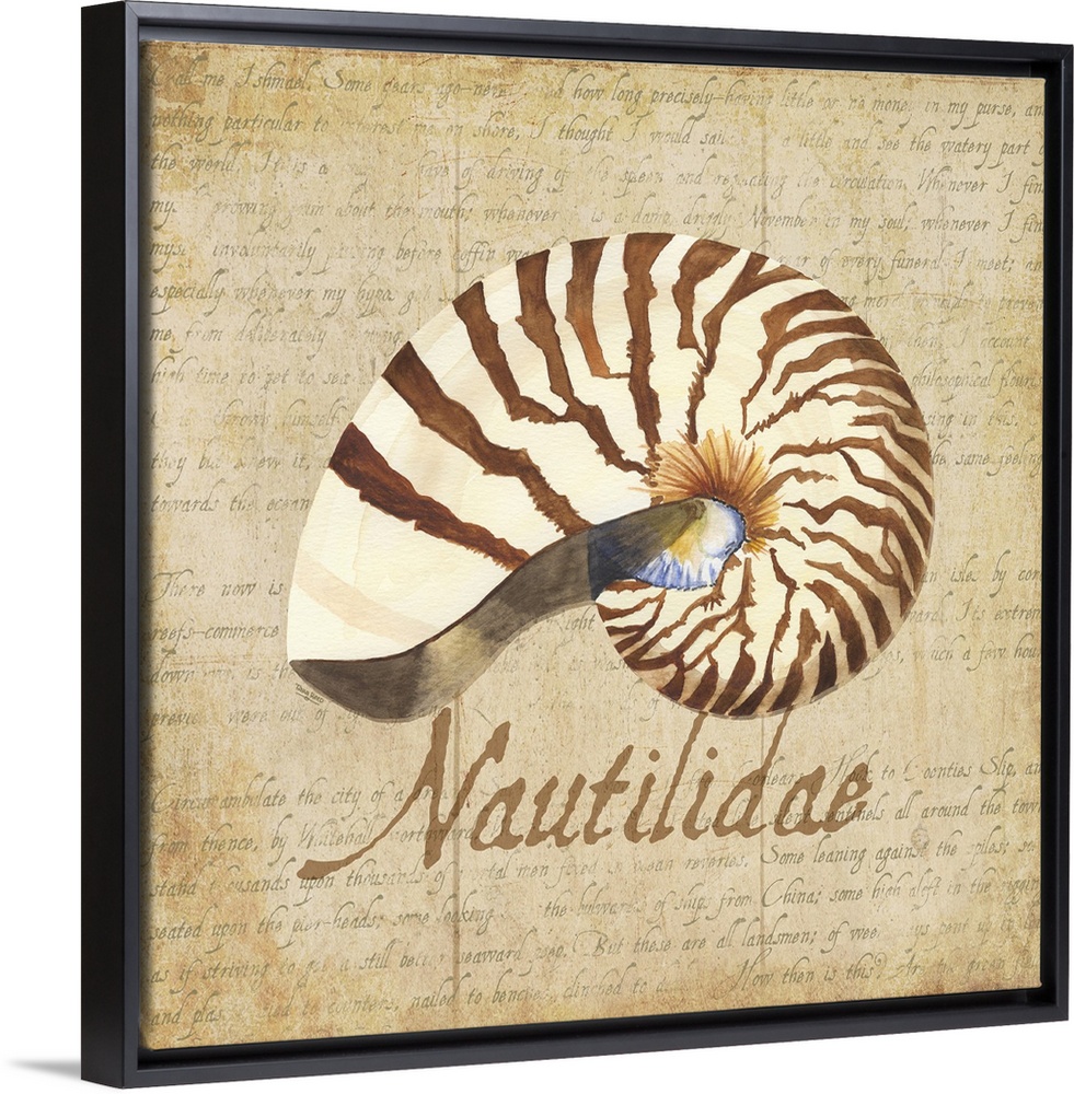 <p>Decorative design of a shell on a beige background with faded text and 'Nautilidae' on the side.</p>
