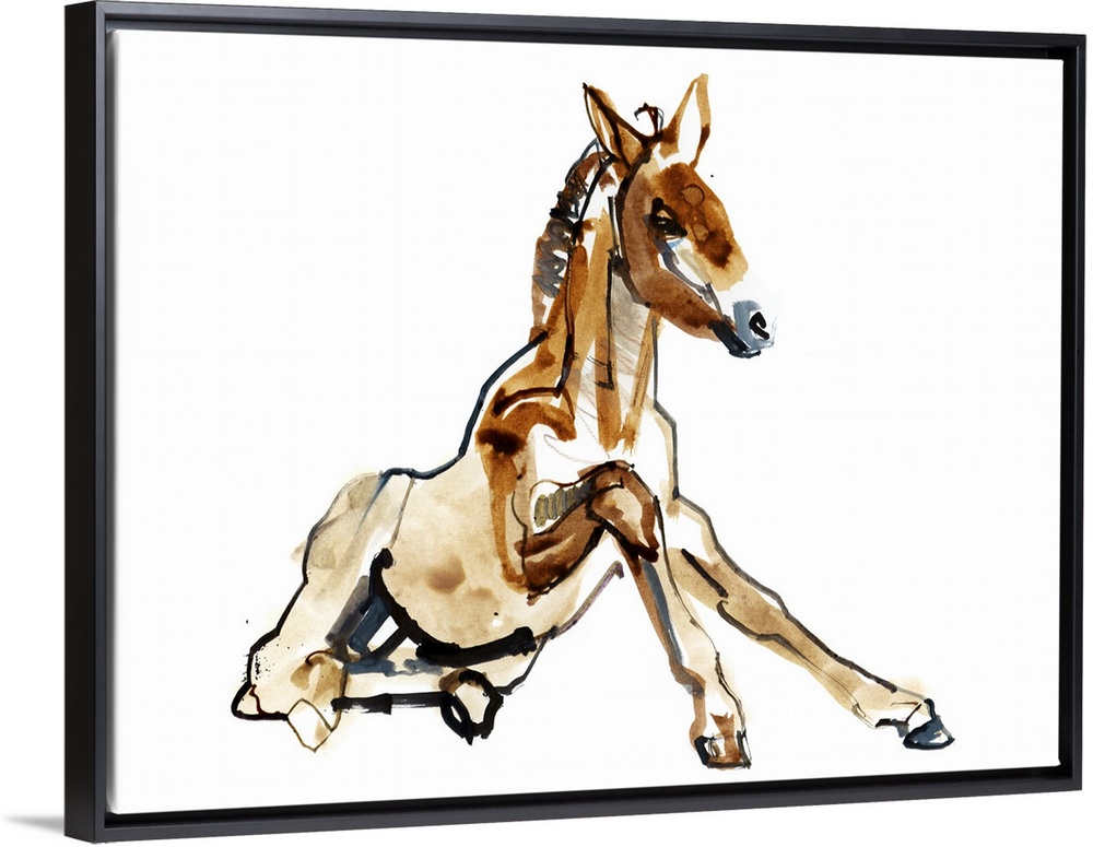 <p>Contemporary artwork of a young Mongolian Przewalski horse trying to stand for the first time against a white background.</p>