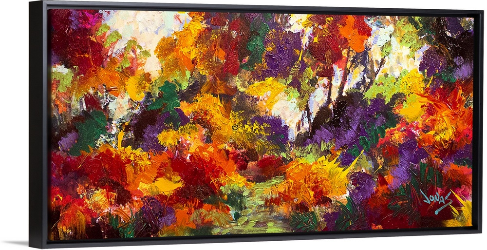 <p>Contemporary abstract painting using a wide spectrum of color and texture resembling a forest.</p>