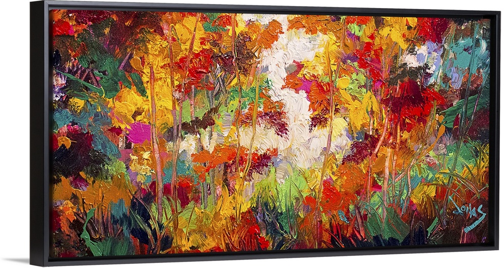 <p>Contemporary abstract painting using a wide spectrum of color and texture resembling a forest.</p>