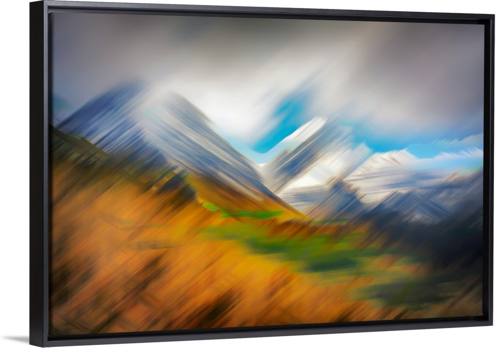 <p>Abstract image of the mountains in the Goat Range in British Columbia, Canada, as seen from Bear Lake. The image was made using the in-camera burst multiple-exposure technique, in lighten mode. The technique creates a painterly effect while intensifying the shapes of the mountains and clouds. Ursula Abresch Fantastic Landscapes Collection.</p>