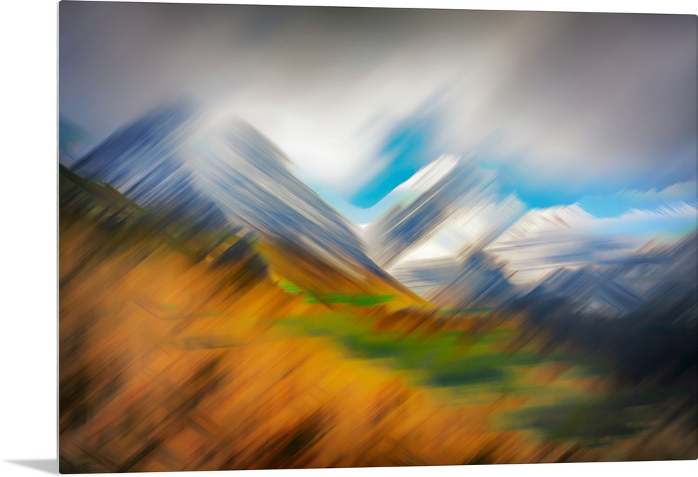 <p>Abstract image of the mountains in the Goat Range in British Columbia, Canada, as seen from Bear Lake. The image was made using the in-camera burst multiple-exposure technique, in lighten mode. The technique creates a painterly effect while intensifying the shapes of the mountains and clouds. Ursula Abresch Fantastic Landscapes Collection.</p>