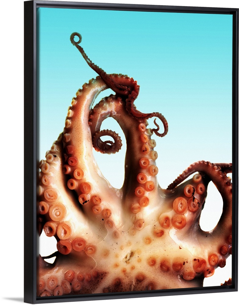 <p>Octopus. The octopus (order Octopoda) is a cephalopod molluscs, a type of marine invertebrate. Here, the underside of the octopus is seen, with eight tentacles forming a ring around its mouth (lower centre). The suckers on the underside of the tentacles are used to grasp prey when hunting, and to manipulate objects. The suckers also have chemoreceptors that allow an octopus to taste what it is touching.</p>
