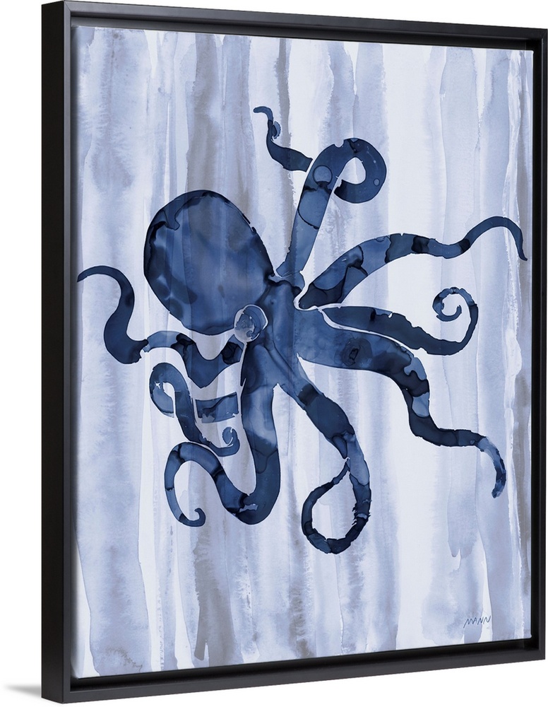Art Blue Wall Art Contemporary Art Painting Watercolor Wildlife Marine Life Octopus and Squid