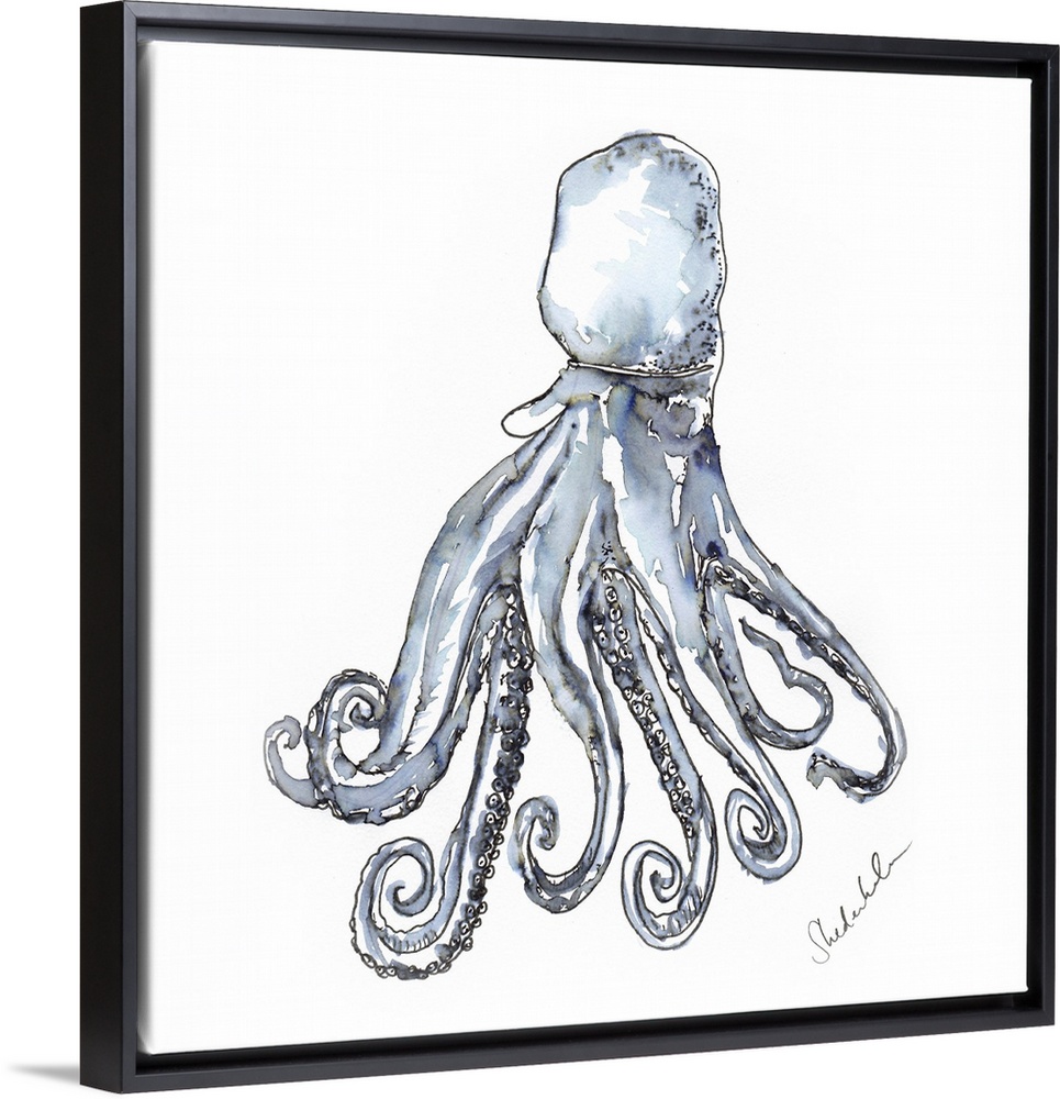 Art Contemporary Art Drawing Grey Wall Art Painting Kendra Shedenhelm Watercolor Wildlife Marine Life Octopus and Squid