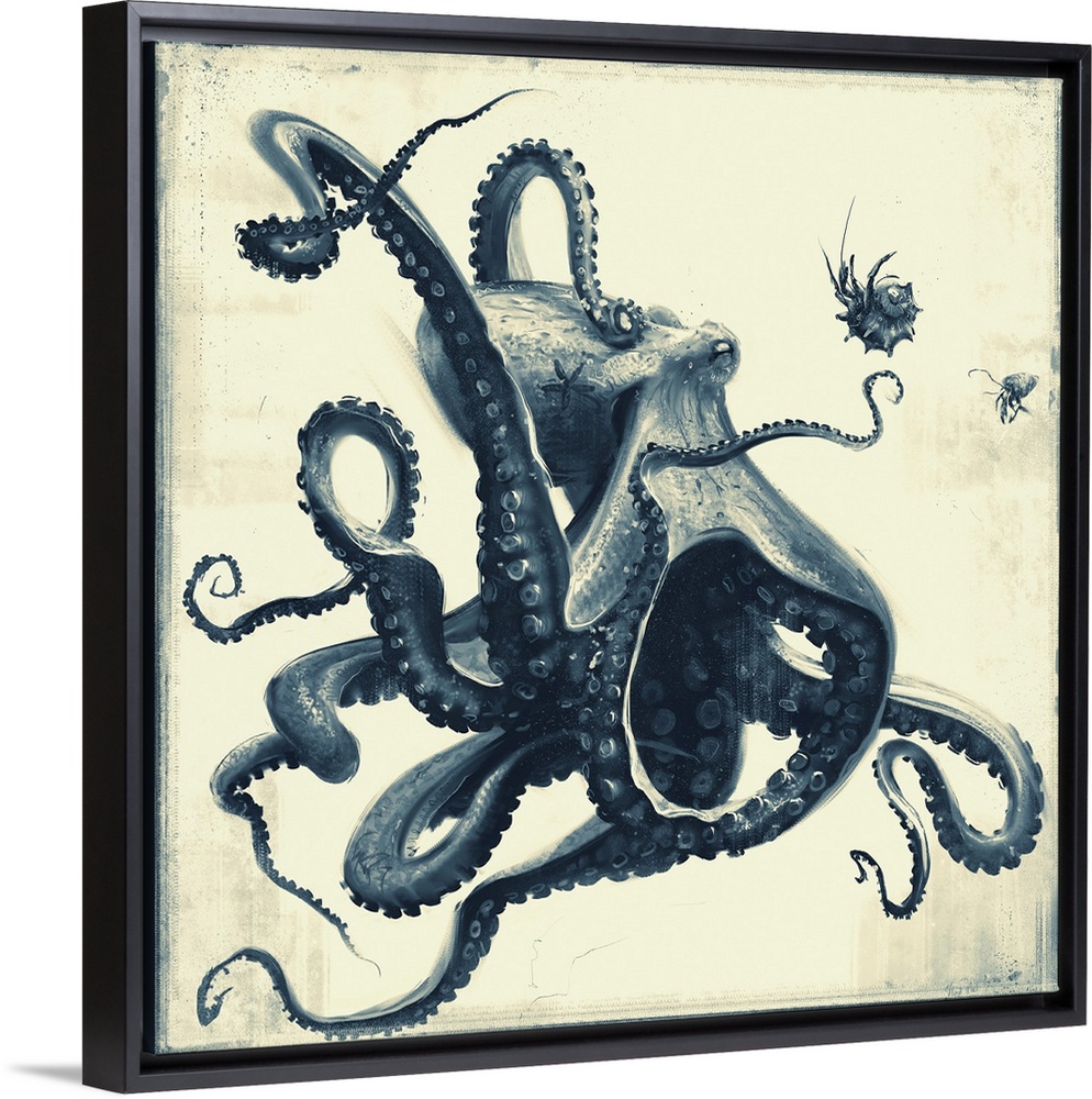 Art Coastal Painting Wildlife Marine Life Octopus and Squid