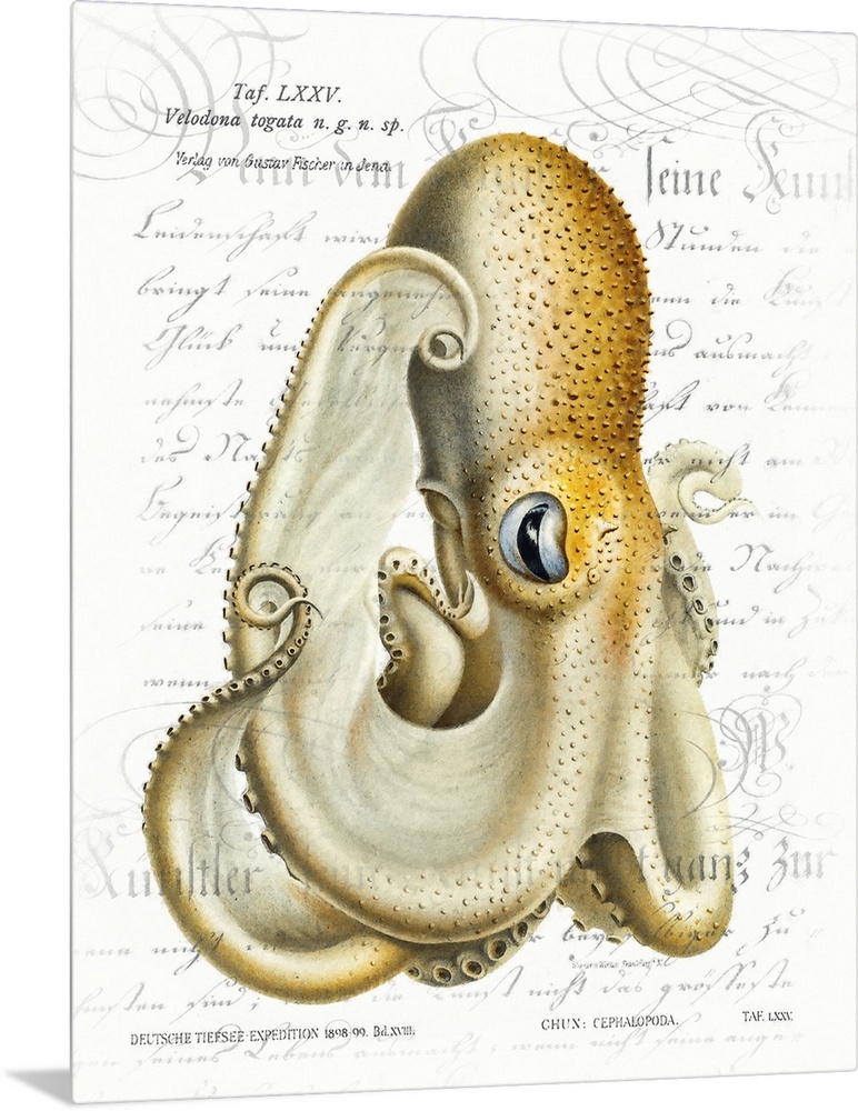 <p>A vintage paint brush rendition of Velodona octopus illustration from Deutschen Tiefsee-Expedition, German Deep Sea Expedition by Carl Chun. Original from Biodiversity Heritage Library.</p>